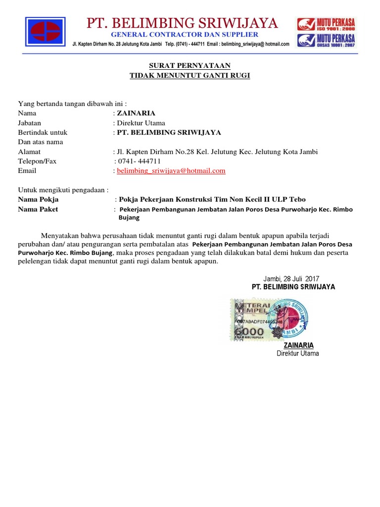 Contoh Surat Ganti Rugi Ke Supplier Contoh Surat Jaminan Ganti Rugi Download Kumpulan Gambar Udang Terbang from i2.wp.com Tapi yang termasuk dalam transaksi penerimaan kas dalam myob adalah semua transaksi yang menambah kas diluar kegiatan usaha pokok perusahaan tersebut. Keadaan memaksa yang relatif adalah suatu keadaan yang menyebabkan debitur Debitur tidak perlu membayar ganti rugi (pasal 1244 kuh perdata); Atas pinjaman tersebut, pt sinar sentosa sepakat akan melunasi utang tersebut paling lambat 3 bulan setelah pinjaman diberikan. Kreditur tidak berhak atas pemenuhan prestasi, tetapi sekaligus demi hukum bebas dari kewajibannya untuk menyerahkan kontra prestasi, kecuali untuk yang disebut dalam pasal 1460 kuh perdata. Sebuah perusahaan supplier dengan nama pt kenanga mulia memberikan pinjaman kepada pt sinar sentosa senilai rp100.000.000 di mana para pihak sepakat untuk menandatangani perjanjian hutang. May 28, 2020 · sebagai contoh, dalam putusan pengadilan negeri yogyakarta nomor 100/pdt.g/2014/pn.yyk, diterangkan bahwa pengadilan, setelah memperhatikan permohonan penggugat intervensi dan tanggapan para penggugat dan tergugat terhadap permohonan itu, menerima permohonan dari pemohon gugatan intervensi untuk menggabungkan diri pada perkara tersebut sebagai. Tidak jarang sebuah karya disalahgunakan oleh orang lain untuk tujuan tidak baik atau tujuan komersial tanpa seizin pencipta.
